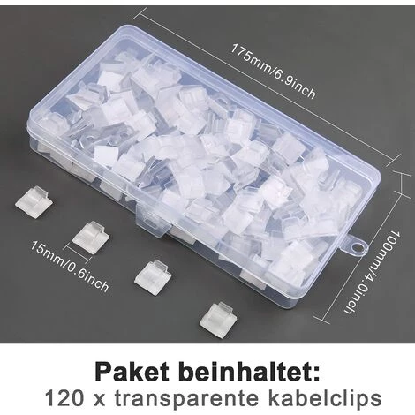 【Lot de 120 supports de câbles par carton】 Longueur : 15 mm, largeur : 15 mm, hauteur : 9 mm, convient pour les câbles d’un diamètre maximal de 5 mm. Le support de câble s’adapte à la plupart des fils, il est petit et peu encombrant.
