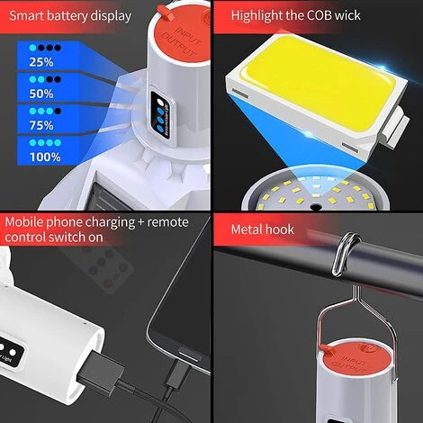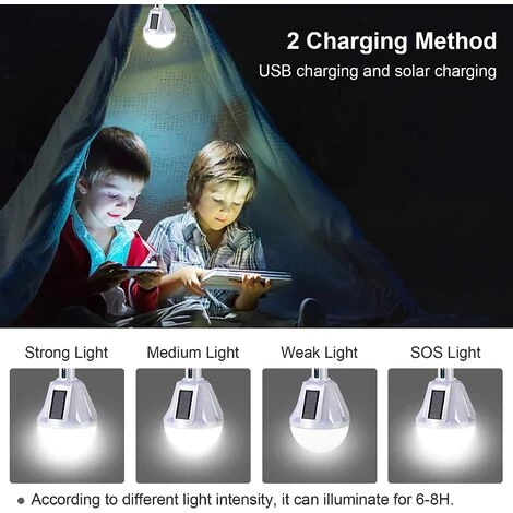 Durée de vie : l’ampoule LED dispose d’une batterie rechargeable de grande capacité intégrée, le temps de fonctionnement est jusqu’à 6 à 10 heures.
