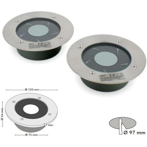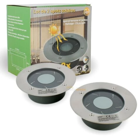 Lot de 2 spots solaires encastrés pour balisage au sol.