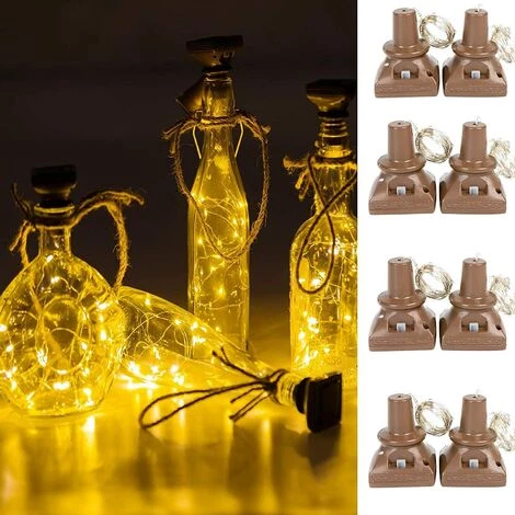 BAICCCF Guirlande Solaire Lot De 8 Lumières De Bouteille De Vin à énergie Solaire Blanc Chaud, 20 LED étanches Pour Extérieur, Décoration De Table De Fée Solaire Pour Mariage, Noël, Vacances, Jardin, Terrasse – 8 Pack 20 Led Blanc Chaud