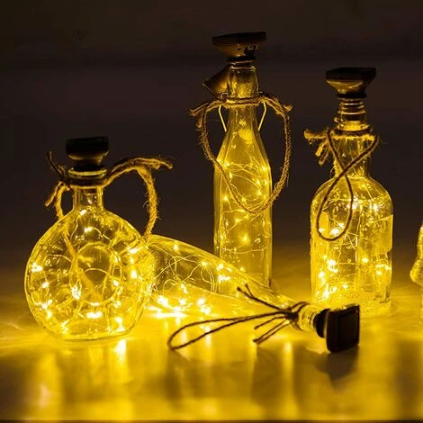 BOUTEILLES DE VIN À ALIMENTATION SOLAIRE (BOUTEILLE DE VIN NON INCLUSE): Convient aux bouteilles de vin, bouteilles en verre, bouteilles de soda, bouteilles de bière et de nombreux autres types de BOUTEILLES, le fond en liège: 45 mm de diamètre. 20 micro LED individuelles de 2 m de long. Sans danger pour une utilisation en intérieur ou en extérieur. PROTECTION DE L’ENVIRONNEMENT ET ÉCONOMIE D’ÉNERGIE : Aucune batterie requise. Un panneau solaire sur le dessus, 100% Solar Powered. Le meilleur choix pour les écologistes, charge généralement au soleil 6-8h s’allumera 10-12h, faites glisser l’interrupteur sur la position « ON », ampoules LED longue durée, peu de chaleur, sans danger pour la manipulation même après une utilisation prolongée.FLEXIBLE Fil de cuivre facilement plié dans n’importe quelle forme selon votre désir : blanc chaud. Éclairage stable. Vous pouvez utiliser pleinement vos bouteilles vides pour bricoler le magnifique décor de jardin, le décor de terrasse, le décor de patio, le décor de clôture, le décor extérieur de Noël, le décor d’Halloween, etc. si vous voulez de l’eau dans la bouteille ou si vous exposez les lumières de la bouteille à la pluie ou à la neige. (Le liège n’est pas étanche). PRATIQUE : IL N’Y A PAS DE REGLAGE COMPLEXE. Un seul bouton pour allumer/éteindre. Haute qualité absolue qui offre suffisamment de luminosité et une longue durée de vie. Un capteur de lumière intégré garantit qu’il s’allume au crépuscule et s’éteint automatiquement à l’aube. 100 % QUALITÉ – Soyez assuré que vous avez fait le bon achat. Nous sommes assez confiants quant à la qualité de nos lampes solaires pour bouteilles de vin.