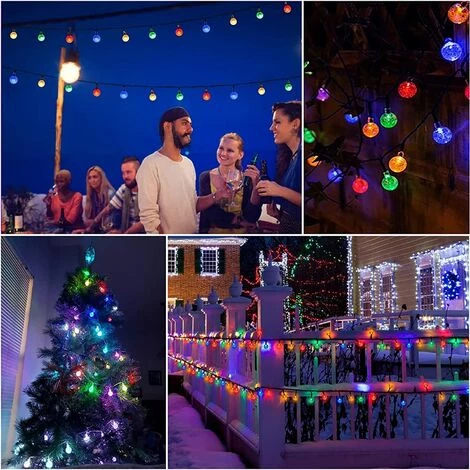 BAICCCF Lampe D’extérieur Guirlande Lumineuse Solaire D’extérieur 60 LED Globe En Cristal 8 Modes 8 M/26 Pieds Guirlande Lumineuse Solaire Intérieure/extérieure étanche Pour Jardin, Terrasse, Cour, Maison, Festival, Fête, Mariage (multicolore)