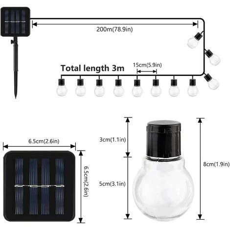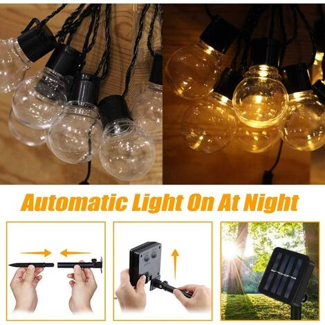 - Économie d’énergie et protection de l’environnement: cette belle guirlande lumineuse blanche chaude se compose de 10 guirlandes à ampoule. Avec IP 65 intégré étanche et 600mAh la batterie solaire de mise à niveau. Aucun coût d’énergie, peut toujours être calculé les jours de pluie ou de nuages, même s’il n’y a pas de lumière directe du soleil.