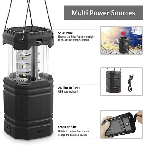 【3 en 1 Lampe de Camping 】: Lanterne solaire portable sert de lampe de camping, lampe de porche et de banque d’alimentation. Lanterne avec 12 LED peut fournir une luminosité de 200 lumens pour une luminosité, éclairer facilement les environs et fournir une luminosité suffisante pour les activités d’extérieur ou les pannes de courant. Batteries 5V 3000mAh intégrées comme banque d’alimentation pour téléphone et autres appareils. Parfait pour le camping, la randonnée, la pêche de nuit, etc.