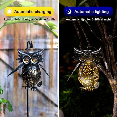 - 【Lumière de jardin délicate】 La lumière de jardin de hibou est faite d’art en fer de haute qualité avec une apparence exquise. Les lumières de jardin d’extérieur sont superbement décorées pendant la journée,et émettre un faisceau merveilleux la nuit, créant une atmosphère romantique et magnifique. Lampe de décoration parfaite pour votre cour, jardin, belvédère, arrière-cour.