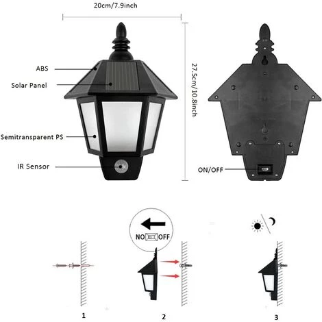 - Installation rapide: avec panneau solaire intégré sur le dessus comme alimentation, il suffit de le monter sur le mur ou la clôture en bois avec 2 vis (inclus), pas de câblage, pas de puissance supplémentaire
