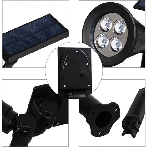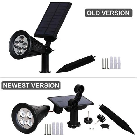 ALIMENTATION SOLAIRE – Lumière solaire 4LED ultra lumineuse, nouvelle 250 lumens. Conception avec un grand panneau solaire pour absorber plus de soleil et des piles au lithium intégrées de 18 650 (2200 mAh) – rechargeables.