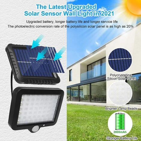 【Économie D’énergie et Respectueux de L’environnement】 Batterie lithium-ion intégrée de 2000 mAh intégrée, notre applique murale solaire absorbe l’énergie solaire et se convertit en électricité, dont le taux de conversion peut atteindre 20%, ce qui permet d’économiser plus de facture d’électricité et de mieux protéger l’environnement