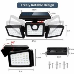 SKECTEN Projecteur Solaire Murale Lampe Solaire Exterieur Avec 3 Têtes 70 LED Détecteur De Mouvement