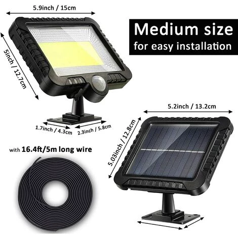 Lampe d’éclairage LED brillante: la lumière du capteur se compose de 56 LED blanches à haute efficacité; Un cordon de 5m de long pour vous permettre de placer le panneau sous la lumière du soleil comme le toit et la lampe dans les endroits où il faut l’allumer, est livré avec une conversion élevée qui produit un excellent éclairage