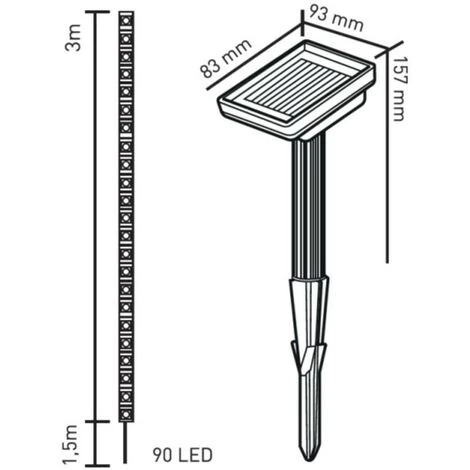 CALI Ruban Led BOA 3 M RGB SOLAIRE Et 1,5m Cable- 8 Programmes – 30 Lumens – IP44