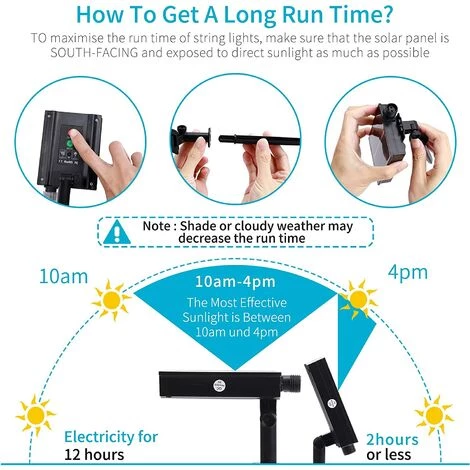 lampe solaire: panneaux solaires améliorés, sans pouvoir ni cordon d’alimentation. Après la journée est pleine d’électricité, il est de plus de 8 heures la nuit. Vous pouvez passer plus de temps à participer à la fête et continuer à profiter du plaisir des lumières de cordes solaires extérieures. Conception créative: 104 LED, 8 chaînes, 13 LED et 1,3 m de long chaque chaîne. De plus, chaque perle de lampe à LED est parallèle, convient à 6 pieds à 10 pieds de parapluies. Accrochez toutes les cordes de lumière sur la tige et fixez-la avec une ligne de faisceau, ce qui est très facile à transporter et à conserver un parapluie de pluie. Télécommande, mémoire et minuterie Caractéristiques: Cette lumière a une télécommande de 13 key pratique. Vous pouvez transformer votre conte de fées, définir 8 modes d’éclairage, régler la fonction de luminosité et de la minuterie. La conception de fonctions de mémoire assure le motif de lampes de parasol pour garder les réglages à 8 modes de luminosité: beau mode d’éclairage, y compris combinaison, fluctuations, séquentielle, fondu lente, lumière lente, chasse, clignotant et ouverture. Imperméable et réutilisable: Solar String est constitué d’un fil de cuivre flexible de haute qualité, de niveau imperméable IP67, toute l’année d’utilisation en plein air. Parapluie décorative blanche chaude 2700K, est idéale pour les restaurants, les parapluies de marché, les jardins, les cafés, les plages et autres salles de plein air. Carrelage, cartes de jeu, camping et autres activités. La puissance solaire est alimentée et elle peut être utilisée pendant 10 heures après une charge complète. Ouverture et fermeture automatique la nuit * Lampe L’ampoule n’est pas remplaçable. N’essayez pas de remplacer la lampe. La lampe à LED a une vie de plus de 20 000 heures. Une variété de modes d’éclairage et de luminosité réglables. * IP67 Imperméable: 104 lampes à LED et panneaux solaires avec panneaux solaires impermérocolaires IP67 garantissent ces lumières de parapluie. Idéal pour une utilisation en extérieur et en intérieur. Instructions d’utilisation: Supprimez le colis et assurez-vous que tous les éléments sont intacts. 2. Installez le panneau solaire sur le support sur la pile d’ancrage. 3. Définissez l’interrupteur marche / arrêt vers le bas. 4. Une variété de modes Flash avec fonction de commutation automatique. 5. Mettez la lampe dans un endroit approprié et sûr. Caractéristiques techniques: Couleur: blanc positif. NIMH Batterie rechargeable: 1,2 V 600 mA. Plaque solaire: plaque de polyéthylène 2 v / 100 mA. Quantité LED: 104 LED. Heures de travail: 8-10 heures après une charge complète. Temps de chargement: 6 heures. La longueur comprise entre 2 flashs: 0,1 m. Température de travail: -22 ° F-140 ° F. LIVRAISON Quantité: 1 pièce