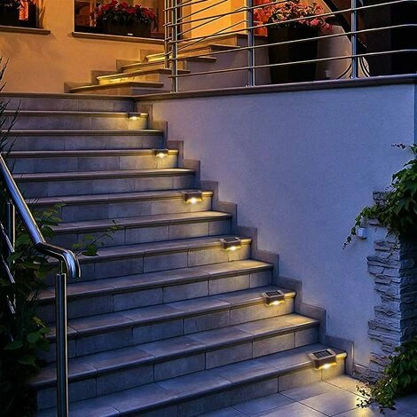 【Durable】 Les lumières des marches extérieures sont fabriquées en plastique ABS durable pour résister à de nombreux types de conditions météorologiques, ne se déforment pas facilement dans le vent, la neige ou la pluie. Les panneaux solaires sont scellés avec de la colle imperméable, qui peut bien fonctionner même après les tempêtes.