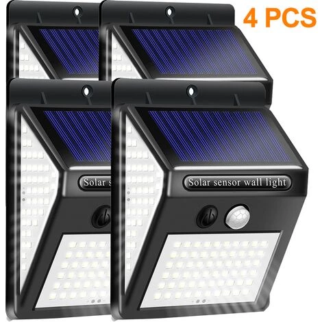 EINEMGELD 4 Pièces De Lampes Solaires Pour L’extérieur 140 LED, Lampes Solaires Pour L’extérieur Avec Détecteur De Mouvement 1200mAh Lampe Solaire LED étanche 3 Modes Lampe Solaire Extérieure 270 ° Pour Jardin Extérieur