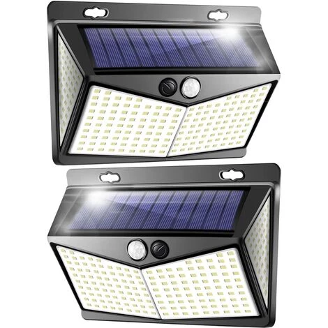 【2 PACK ET 208 LED LAMPE SOLAIRE EXTERIEUR】Lampe solaire exterieur avec detecteur de mouvement 208 perles LED haute luminosité et une plage d’éclairage grand angle de 270° maximum, conception d’éclairage incurvée en 3D, l’éclairage solaire extérieur crée une plus grande plage d’éclairage, éclaire facilement plus de 30 plages de surface plane la nuit, facile à installer et à utiliser.Une forte émission d’éclairage éclaircit autour de la maison.