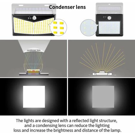 | L’angle plus large de 270° permet une meilleure couverture | Lampe de sécurité solaire étanche | Conception à triple lumen pour un angle plus large et plus lumineux |