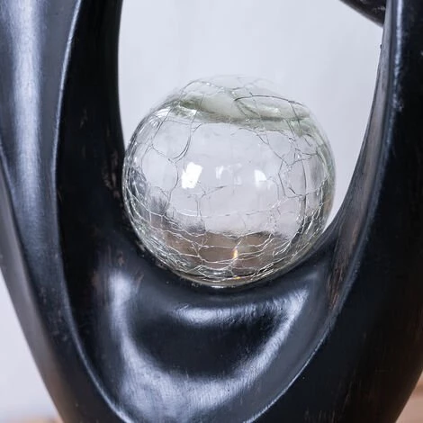 la description Cette lampe solaire moderne est faite de plastique robuste et est noire. Au milieu de la lampe se trouve une boule de verre à l’aspect craquelé, qui contient l’illuminant LED. La lumière extérieure est chargée via le panneau solaire pendant la journée et la lumière est à nouveau émise dans l’obscurité jusqu’à 8 heures. Les ampoules LED sont installées en permanence dans la lampe. Détails lampe • Type de lampe : lampe solaire • Matériau : plastique • La couleur noire • Boule de verre, motif craquelé • Effet feu • Changer • Pile rechargeable incluse : 1 x AA, Ni-Mh • Autonomie : environ 6-8 heures • Degré de protection : IP44 • Longueur x largeur x hauteur en cm : 25,5 x 11 x 45 • Éclairant : 1 x DEL • Ampoules incluses : oui (installées en permanence) • Puissance de la lampe : 1 x 0,06 watt • Couleur de la lumière : blanc chaud • Température de couleur : 3 000 kelvins • Tension : 3 volts