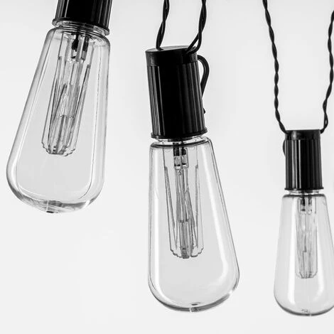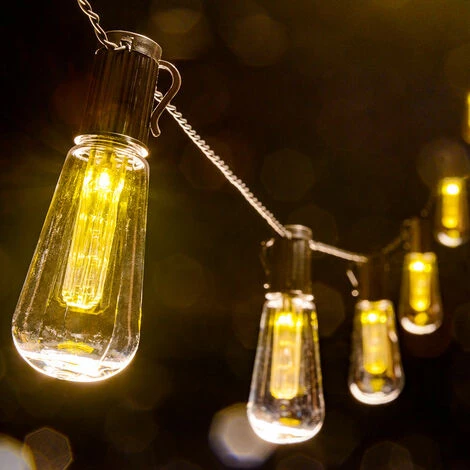Description produit Guirlande solaire LED. Cette guirlande lumineuse solaire illuminera vos soirée d’été. Elle dispose de 10 ampoules LED d’une longueur totale de 6 mètres. L’allumage se fait automatiquement par capteur crépusculaire. Batterie rechargeable 1.2V grâce à un panneau solaire avec interrupteur. 3 options de montage pratique pour le panneau solaire :