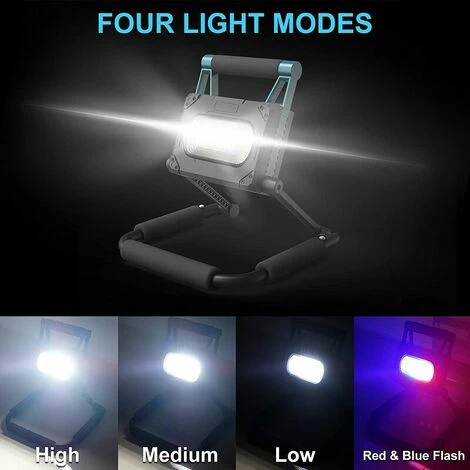 【4 modes】 Il existe 4 modes d’éclairage : mode d’éclairage élevé, mode d’éclairage moyen, mode d’éclairage faible, mode SOS (clignotant rouge et bleu). Les lampes de travail peuvent répondre aux besoins de diverses situations pour garantir qu’elles peuvent répondre aux urgences.
