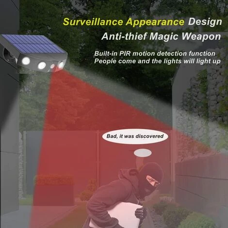 【Lumière à énergie solaire】 Cette lumière avec 4 perles de lampe haute puissance, ne nécessite pas de piles ou d’électricité pour fonctionner car elle possède des panneaux solaires intégrés de qualité industrielle qui absorbent les rayons du soleil pendant la journée et utilise cette énergie stockée pendant toute la nuit valeur d’éclairage