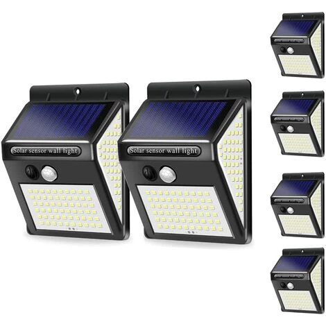FVBJD Lampe Solaire Extérieur, 2 Pack 144 LED Lumière Solaire IP65 Etanche Projecteur LED Extérieur Avec Détecteur De Mouvement, Éclairage Mural De Sécurité Sans Fil Pour Jardin – Éclairage 270°