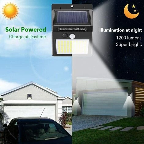 Lampes solaires avec 144 LEDs : Les spots leds extérieures sont munies de 144 LEDs pour une puissance de 1200 lumens, qui répondent entièrement aux besoins d‘éclairage quotidiens des routes, garages, jardins, cours, etc. L’intérieur de la lampe solaire est équipé d’une batterie de 1200 mAh, qui peut garantir le travail d’éclairage qu’il soit nuageux ou pluvieux.