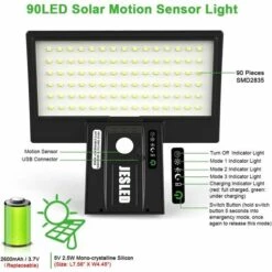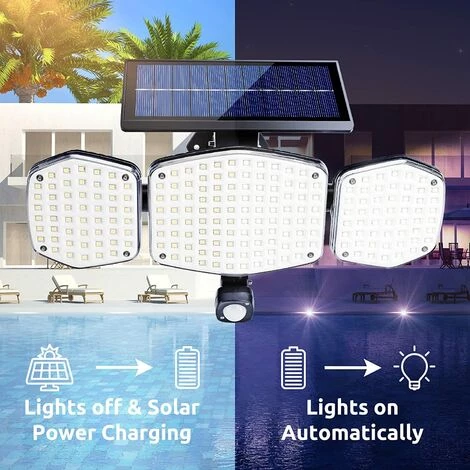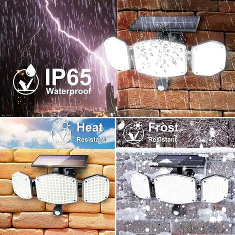 【Lampes solaires d’extérieur avec détecteur de mouvement】 Cette lampe solaire est dotée de 208 LED, qui dispose de 3 modes d’éclairage : mode capteur de lumière forte, mode capteur de lumière faible, mode lumière moyenne stable. Le détecteur de mouvement amélioré détecte les personnes à une distance de 3 à 7 m.