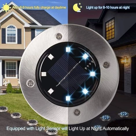 ✨【Meilleur panneau solaire】 Le panneau solaire amélioré a 2v 100mAh et son taux de conversion d’énergie peut aller jusqu’à 17%. Cela signifie qu’il absorbe plus de lumière dans la même période que les autres: pendant la journée, le panneau solaire absorbe automatiquement l’énergie, la nuit, les lumières enterrées s’allument automatiquement en réponse au capteur.