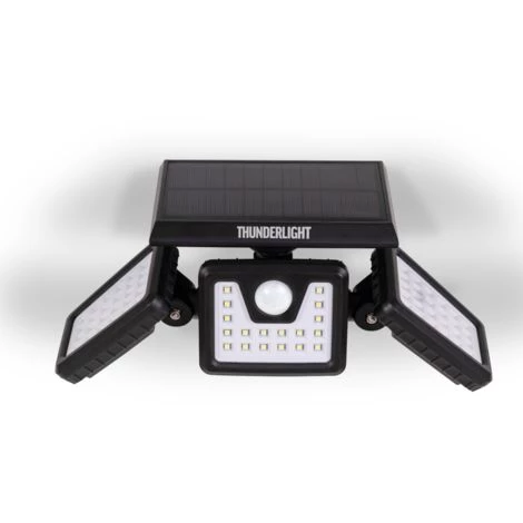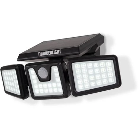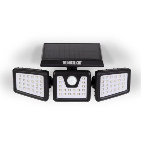 Eclairer de manière efficace votre extérieur est désormais possible grâce à ce projecteur solaire 3 têtes 70 led avec son capteur solaire et son détecteur de présence 120 degrés.Un abri de jardin, une dépendance située dans le fond du jardin, au-dessus de votre porte de garage : cette lampe d’extérieur en ABS+polycarbonate est équipée de 3 têtes pour 3 fois plus de possibilités ! Pratique sans fil, il s’installe où vous le souhaitez avec sa large base et ses 3 têtes pivotantes de haut en bas et de façon latérale. Vous éclairez sur une longue portée où vous le souhaitez.Ce projecteur intelligent s’adapte à tous vos besoins.Son détecteur de présence à 120° s’allume au moindre mouvement sur une portée allant jusqu’à 8-10 m avec une durée d’éclairage de 30 secondes.Ecologiques, ses 70 LED blanches sont alimentées par un panneau solaire (Dim. 15 x 10.5 cm) collectant l’énergie pendant toute la journée.Il s’allume automatiquement dès la tombée de la nuit au moindre passage.Dimensions et composition du projecteur solaire 3 têtes – Indice de protection IP44 certifié pour résister aux intempéries- Batterie solaire : 7 W avec batterie Li-ion 3.7V 2200mah- Flux lumineux : environ 650 lumens- Dimensions du projecteur : 28 x 11 x 13 CM en ABS + PC coloris noir- Système de fixation murale inclus- Conforme aux normes CE / RoHS en vigueurDécouvrez tous nos projecteurs et appliques sur notre boutique en ligne !