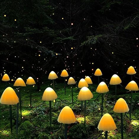 【Décor de champignon d’extérieur】Ces jolies lumières de décoration en forme d’adorable petit champignon peuvent être accrochées à des branches, des buissons, des toits, des avant-toits, des cl?tures ou d’autres endroits de votre choix, créant une atmosphère chaleureuse et douce pour votre maison