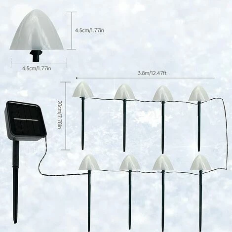 【Conception De Forme De Champignon Mignon】 La champignon guirlande lumineuse solaire a un design de champignon mignon et adorable. La lumière de fil de cuivre de haute qualité de 6.5M de long est mince et flexible, équipée de 30 lumières LED. Les lumières blanches chaudes et la forme mignonne des champignons créent une atmosphère fantastique.
