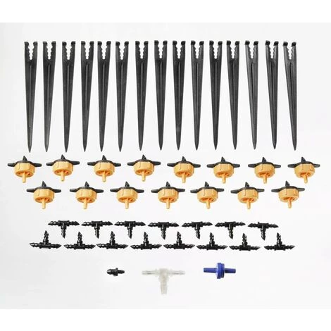 Inclut 15 supports et busesS’allume automatiquement 2 x par jourIntervalle réglable de 0,5 à 5 litres par irrigationExtrait l’eau d’un baril, d’un étang ou d’un seau de pluie, par exemple