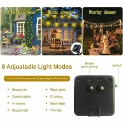 - GrĂące Ă son panneau solaire, votre guirlande se chargera la journĂ©e pour s’allumer automatiquement Ă la tombĂ©e de la nuit.