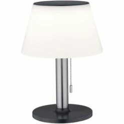 La lampe de table d’extérieur Lillesol offre une lumière agréable dans le jardin ou sur la terrasse. La batterie lithium-ion se recharge par la lumière du soleil pendant la journée et rend inutile une prise de courant à proximité. La lumière peut être atténuée en trois étapes. Ce texte a été traduit par une machine.