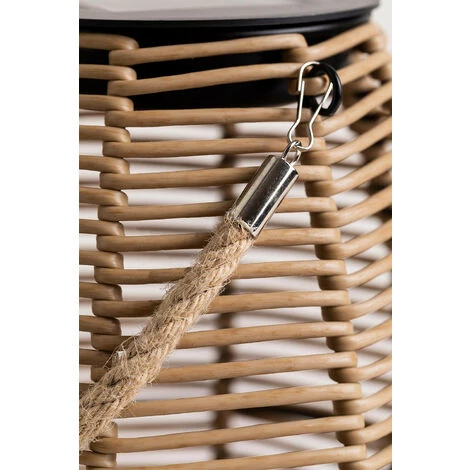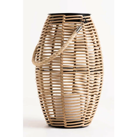 Notre lampe d’extérieur à LED solaire Vanir, fabriquée en rotin naturel avec une structure originale de ficelle de rotin synthétique originale créant une lampe avec une forme cylindrique sophistiquée et élégante. Une lampe de table qui comprend une petite LED et un accessoire en plastique qui imite une bougie à l’intérieur qui vous aide à créer une atmosphère plus chaleureuse et plus accueillante. Elle apporte une touche exclusive à la décoration de votre jardin ou de votre terrasse. Comprend des panneaux solaires et une batterie rechargeable.Pour le nettoyage, nous vous recommandons d’utiliser un chiffon humide et d’éviter l’utilisation de produits chimiques. Tous les produits placés à l’extérieur nécessitent des soins particuliers, évitez de les exposer aux intempéries et à l’humidité, ainsi que de les laisser longtemps au soleil. Conservez-les à l’abri lorsque vous ne les utilisez pas. Dimensions (Hauteur x Largeur x Profondeur): 45 cm x 16,5 cm x cm IMPORTANT : Le service standard porte-à-porte ne comprend pas la livraison et la collecte des marchandises au domicile du client, qui sont à la charge de ce dernier. Il est possible que le livreur aide volontairement à la livraison de la marchandise (ceci est totalement volontaire pour le livreur et la société de transport et ne relève pas de la responsabilité de Sklum).L’assemblage n’est pas non plus inclus.