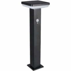 La description Cette lampe solaire sur pied de forme carrée est indépendante d’une installation électrique et peut donc être placée n’importe où. L’installation rapide et facile et l’économie d’énergie sont d’autres avantages de cette lampe. De plus, le luminaire est équipé d’un détecteur de mouvement qui détecte les mouvements sous un angle de 100 ° avec un max. Portée de 7m enregistrée. Cette lampe d’extérieur peut fonctionner en 3 modes différents (1er mode 55 lumens, 2ème mode 220lm – 25 secondes, 3ème mode 500 lumens – 25 secondes). L’illuminant LED est installé en permanence dans la lampe. Détails lampe • Type de lampe: applique murale solaire • Matière: acier, noir • Abat-jour: plastique, blanc • Détecteur de mouvement: 100 ° • Plage: max. 7m • Batterie incluse: oui • Degré de protection: IP44 • Longueur x largeur x hauteur en cm: 15 x 15 x 50 • Illuminant: 1x LED • Ampoules incluses: Oui (installées en permanence) • Ampoules électriques: 1x max 5 watts • Flux lumineux: 1x max. 500 lumens • Température de couleur: 4000 Kelvin • Couleur claire: blanc neutre