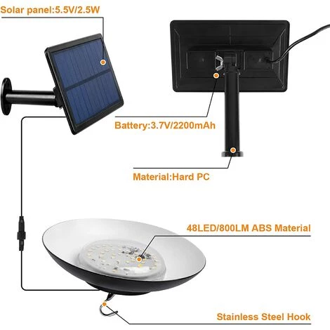【IP65 Étanche】: Fabriquée dans un matériau de haute qualité, la suspension solaire est solide, résistante à l’usure, durable et robuste, avec une longue durée de vie. La fonction étanche IP65 apporte plus de confort pour une utilisation en extérieur.