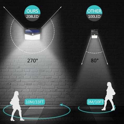 - ?? ?208 lampes solaires super lumineuses? Equipé de 208 perles super LED et d’un angle de mouvement d’un maximum de 270°. Brille facilement de 26 pieds à 33 pieds. Par rapport à la plupart des lampes solaires similaires sur le marché, Nacinic Solar Light crée un éclairage plus lumineux et plus puissant qui transforme l’endroit sombre en un endroit lumineux.