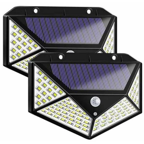 le colis contient 2 lampes solaires, 1 manuel d’instructions, 4 vis et 4 vis. La lampe solaire est équipée de panneaux solaires, d’un détecteur de mouvement et de 100 LED. Idéal pour l’éclairage extérieur car il ne nécessite aucune facture de construction, de câblage ou d’électricité.