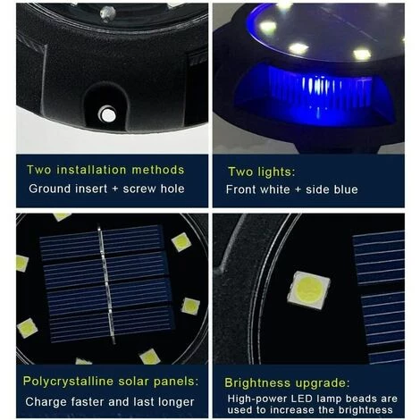 Efficacité solaire plus élevée: batterie 600mAh intégrée avec éclairage de jardin, chaque lampe solaire avec 8 LED peut fournir environ 8 heures de lumière blanche la nuit après avoir été remplie de 6-8 heures de soleil pendant la journée. Assurez-vousd’activer l’interrupteur avant de placer la lampe solaire à l’extérieur pour la charger au soleil.