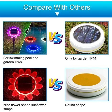 Conception 2 EN 1: indice d’étanchéité IP68, peut être utilisé comme éclairage solaire de jardin pour décorer parfaitement les jardins, les terrasses ou les porches. Il peut également être utilisé comme éclairage de piscine flottant pour décorer des piscines, des fontaines, des jardins, etc.