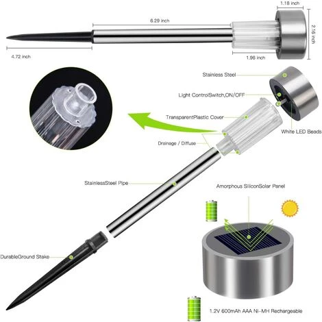 【Kit de 12】: Notre lampe solaire au sol est livré avec 12pcs lampes, facile à installer, un bon éclairage de sécurité pour l’extérieur.