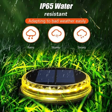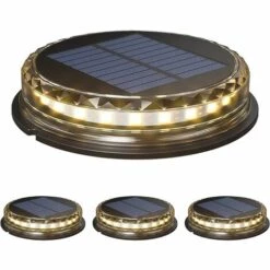 Chaque lumière est composée de 17 perles de lumière blanc chaud, plus lumineuses que les autres lampes à disque solaire, offrant une scène éblouissante dans l’obscurité, elle convient très bien aux jardins, patios, trottoirs, chemins, terrasses, camping, etc. / p >