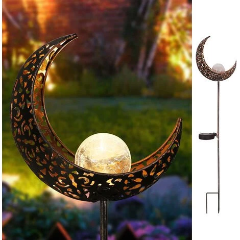 La lampe de paysage en fer est portable en taille et en poids, pratique à installer et à retirer. Le panneau solaire transforme la lumière du soleil en impulsion, économie d’énergie et respect de l’environnement. La lune évidée peut non seulement protéger l’ampoule, mais constitue également une belle décoration domestique.