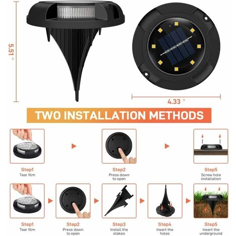 【Contrôle Automatique】La lumière solaire jardin est conçue avec un capteur de lumière très sensible, qui peut détecter avec précision la lumière. Pendant la journée, elle absorbe la lumière du soleil et la convertit en énergie électrique qui sera stockée dans la batterie intégrée. La nuit, la lampe solaire intégrée s’allume automatiquement en fonction du capteur.