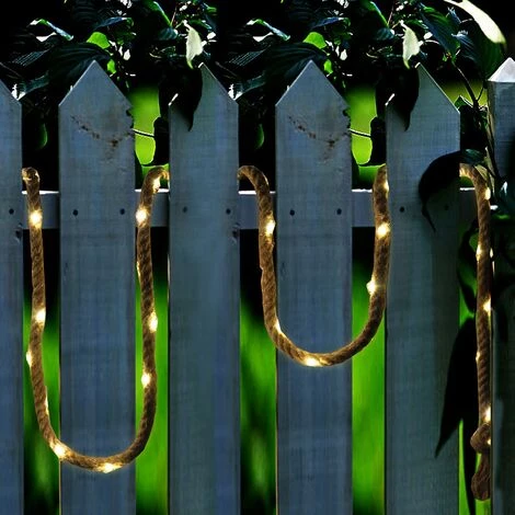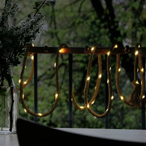 GUIRLANDE SOLAIRE LED : Roppy est une guirlande solaire LED sans fil blanc chaud. Cette guirlande se distingue par son design tendance et naturel mais également par son autonomie de fonctionnement (jusqu’à 8h). Elle est idéale comme guirlande design, guirlande de décoration intérieur et extérieur ou encore pour illuminer vos soirées. Rien de mieux que cette guirlande pour accompagner vos meilleures soirées, mariage ou anniversaire.UTILISATION EXTÉRIEUR / INTÉRIEUR : après avoir rechargé votre guirlande par l’énergie solaire, vous pourrez utiliser cette guirlande design de partout, aussi bien à l’extérieur qu’à l’intérieur. Indispensable pour les grandes occasions mais pas seulement, la guirlande Roppy apportera à votre pièce une décoration tendance, originale et s’adaptera à toutes les situations.AUTONOMIE : la guirlande Roppy, une fois chargée à son maximum, peut éclairer tout autour de vous pendant près de 8 heures. Le temps de chargement complet de la guirlande est de 4-6 heures avec un panneau solaire.INTENSITÉ : la guirlande Roppy possède une luminosité blanc chaud qui apporte à votre espace une ambiance chaleureuse. Elle fonctionne sur une base LED intégrée. Cette guirlande lumineuse est un bel éclairage d’ambiance avec un flux lumineux de moins de 100 Lumens.ROBUSTE : ainsi, la guirlande solaire LED Roppy design d’une longueur totale de 4,50m composée de 60 LED accrochées à une corde est protégée contre les éclaboussures (IP 44) et résiste aux UV.
