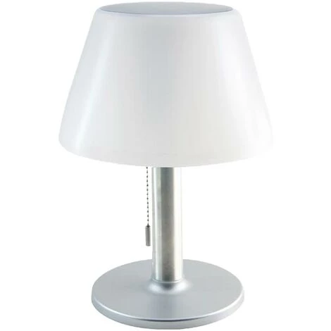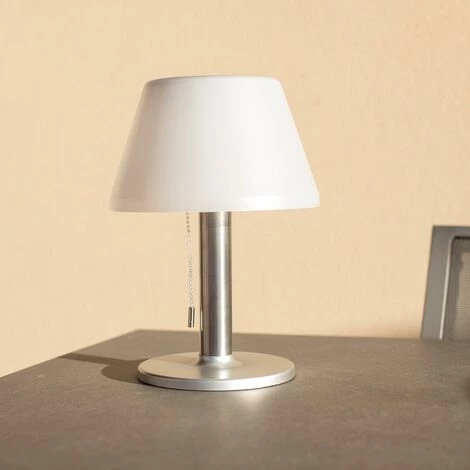 LAMPE DE TABLE SOLAIRE LED : Lenny est une lampe de table sans fil LED blanc froid. Cette lampe solaire se distingue par son design original et épuré mais également par son autonomie de fonctionnement (jusqu’à 12 heures). Lampe de table solaire et autonome avec interrupteur, Lenny apportera à votre décoration une touche tendance et moderne. Elle est idéale comme lampe de table design, lampe de chevet ou veilleuse pour enfant ou encore pour éclairer tous vos mariages, anniversaires et autres réceptions. À vous de choisir !UTILISATION EXTÉRIEUR / INTÉRIEUR : après une charge solaire rapide de votre lampe Lenny, vous pourrez utiliser cette lampe design de partout, à l’extérieur comme dans la maison. Que ce soit comme lampe d’extérieur pour le jardin, comme lampe de table pour le salon, ou simplement comme lampe déco, la lampe de table solaire Lenny s’adapte à toutes les situations.AUTONOMIE : la lampe Lenny, une fois chargée à son maximum, peut éclairer tout autour de vous pendant près de 12 heures. Le temps de charge complet de la lanterne est de 6-8 heures.INTENSITÉ : la lampe Lenny possède une luminosité blanc froid avec variateur d’intensité qui apportera à votre espace une atmosphère cosy. Cette lampe solaire est un bel éclairage puissant avec son flux lumineux de plus de 100 Lumens.PRATIQUE, ROBUSTE & TENDANCE : la lanterne solaire LED design avec son pied en métal, d’une hauteur de 28cm (diamètre 20cm), est protégée contre les éclaboussures (IP44) et résiste aussi aux UV. La lanterne Lenny se nettoie facilement avec de l’eau tiède et du savon doux.