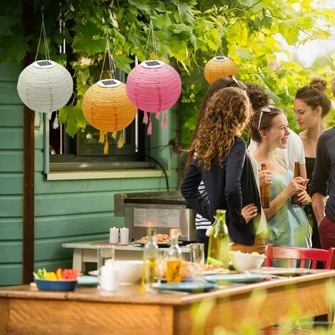 SUSPENSION SOLAIRE LED : 3x Shangri La est un lot de 3 suspensions solaires Ă base LED blanc chaud qui possĂšde jusqu’Ă 8 heures d’autonomie de fonctionnement. Originales elles apporteront une touche bohĂšme Ă votre dĂ©coration. Le lot de lampions solaires (rose, crĂšme et orange) 3x Shangri La est idĂ©al pour Ă©clairer vos terrasses d’Ă©tĂ© ou encore tous vos mariages, anniversaires et autres rĂ©ceptions. Ă vous de choisir oĂč l’accrocher !UTILISATION INTĂRIEUR / EXTĂRIEUR : aprĂšs une charge solaire rapide de vos lanternes chinoises 3x Shangri La, vous pourrez utiliser ces luminaires designs partout, Ă l’extĂ©rieur comme dans la maison. Que ce soit comme lampe d’extĂ©rieur pour la terrasse, comme suspension pour le salon, ou simplement comme lampe dĂ©co pour le jardin, la lampe solaire 3x Shangri La s’adapte Ă toutes les situations. Attention, elles ne sont pas Ă©tanches aux Ă©claboussures.AUTONOMIE : le lot de suspensions solaires 3x Shangri La, une fois chargĂ© Ă son maximum, peut Ă©clairer tout autour de vous pendant prĂšs de 8 heures. Le temps de charge complet des lampes est de 4-6 heures.INTENSITĂ : le lot de lanternes solaires 3x Shangri La possĂšde une luminositĂ© blanc chaud qui apportera Ă votre espace une atmosphĂšre chaleureuse. Ces lampes solaires sont un bel Ă©clairage d’ambiance avec leur flux lumineux de moins de 100 Lumens.PRATIQUE, ROBUSTE & TENDANCE : l’Ă©clairage extĂ©rieur solaire 3x Shangri La, n’est pas protĂ©gĂ© contre les Ă©claboussures (IP20) et fait un diamĂštre de 20cm. Le lot de suspensions solaires 3x Shangri La se nettoie facilement avec un chiffon sec.