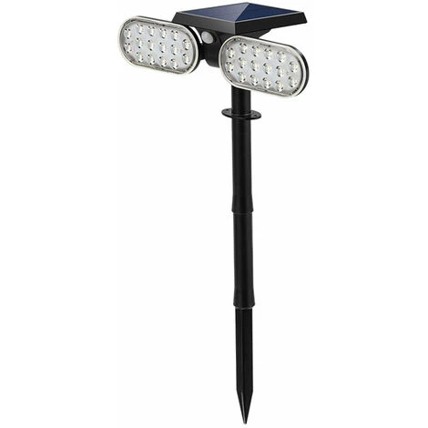 SPOT SOLAIRE LED : GALVIN est un spot solaire à base LED blanc froid qui possède jusqu’à 12 heures d’autonomie de fonctionnement. Ce spot est 2 en 1, en effet vous pouvez le fixer au mur mais également le planter dans votre jardin. GALVIN dispose d’un angle d’éclairage de 270° grâce à ses deux têtes orientables ainsi qu’un angle de détecteur de mouvement égal à 120°. UTILISATION EXTÉRIEUR : après une charge solaire rapide du spot GALVIN, vous pourrez l’utiliser partout à l’extérieur. Que ce soit pour baliser une allée, éclairer une jardinière, l’allée d’un garage ou simplement comme point lumineux extérieur, la lumière solaire s’adapte à toutes les situations. AUTONOMIE : le spot GALVIN une fois chargé à son maximum, peut éclairer tout autour de vous pendant près de 12 heures. Le temps de charge complet de la lampe est de 5 heures.INTENSITÉ : le spot GALVIN possède une luminosité froid à intensité variable. Ces lampes solaires sont un bel éclairage puissant avec leur flux lumineux de plus de 200 Lumens.CARACTÉRISTIQUES : dimensions du produit : 25 x 15 x 46 cm Poids produit : 0,38kg, Indice de protection (IP) : IP65, Couleur : Noir, Matériau : Plastique, Nombre de LED : 32, Volt : 3,7 Volts, Puissance W : 2W, Usage : extérieur, Fonctions : Avec détecteur de mouvement 120°, Angle d’éclairage : Réglable (jusqu’à 270°), Type de prise : Solaire, Batterie : lithium 2200mAh, Type d’ampoule : LED, Flux lumineux : 600lm, Panneau solaire orientable (14.7x9cm)