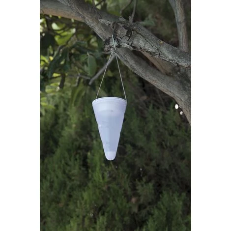 SUSPENSION SOLAIRE LED : Hang Creamy W34 est une suspension solaire LED blanc froid conique. Cette lampe solaire se distingue par son design épuré mais également par son autonomie de fonctionnement (jusqu’à 6 heures). La suspension solaire et autonome Hang Creamy W34 apportera à votre décoration une touche tendance. Elle est idéale pour éclairer vos terrasses d’été ou encore tous vos mariages, anniversaires et autres réceptions. À vous de choisir où l’accrocher !